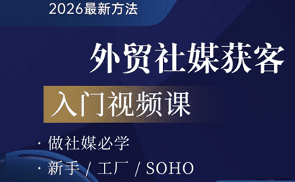 适合外贸新人、业务员、创业者及工厂老板,带你快速开启外贸社媒获客之路。课程涵盖外贸趋势、社媒流量机制、账号搭建与养号 SOP、账号及内容定位、优质客户筛选六大核心模块,拆解新旧外贸获客模式差异,教你选对平台、做好内容、精准获客,避开新手常见坑,搭建外贸社媒获客基础认知与实操框架,为后续高效获客打牢基础。